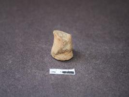 | Description / विवरण | Fragment of terracotta earlobe, drum-bell shaped, flat end,half broken, wormout, ill fired,dull red. |