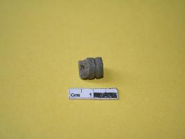 | Description / विवरण | Terracotta bead partly broken , barrel shaped circular section, horigontally grooved, grey colour. |