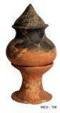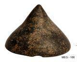 | Description / विवरण | Highly polished conical lid with slightly hemispherical conical body and pointed top. It has incurved bottom with thick rim. A deep groove inside the rim. |