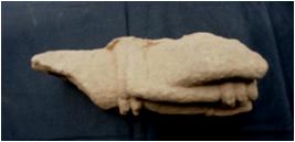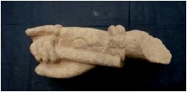 | Description / विवरण | In this object a hand portion is holding an Ayudha which was found from Buddhist site. It may be the part of Buddha image. |