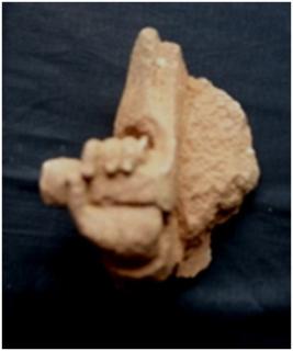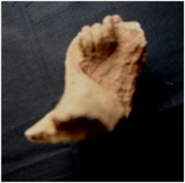 | Description / विवरण | This Object is showing a hand portion which is holding Ayudha. It may be the part of a Buddha image which was found from Buddhist site. |