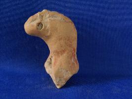 | Description / विवरण | Unidentified animal figurine. Head portion book like snake s head. Punched circulated band on forehead. A transverse hole through the mouth shows that this figure was used as toy. Moulded and red colour. |
