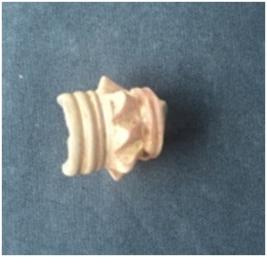 | Description / विवरण | This broken terracotta object is known as Chillam. Which was used for purpose of smoking A big note mark on the center of the object. Outside of the object is designed. 7 projecting rectangular designed is noticed on the outer surface of the object |