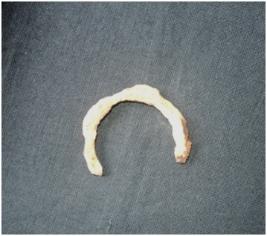 | Description / विवरण | A piece of a ear ring made of thin band of iron .Presently it is totally eroded due to corrosion of metal |