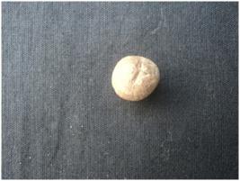 | Description / विवरण | This terracotta object may have been used either as pebbles or as pellpets for saling or sling bow. Cracks and cut marks are noticed on the object s body |