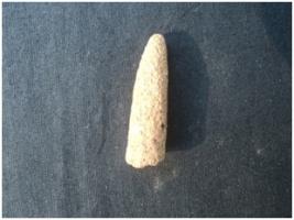 | Description / विवरण | It is a terracotta gamesman with pointed top. Lower part of the base has been broken. It was used for the purpose of game during the earliest period |