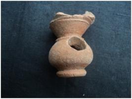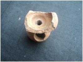 | Description / विवरण | It is a terracotta smoking pipe with having a big hole on the out side of the object. It has a base. Body of the object is rounded shape andit is looking like a miniature pof shape. Then rest portion of the object has been broken. |
