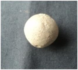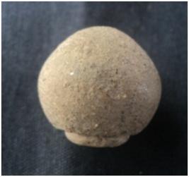 | Description / विवरण | It is a terracotta Areca nut Bead with having a hole. A deed incised circle line is noticed at button end |