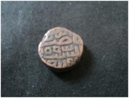 | Description / विवरण | Copper Medieval Inscribed Coin. Irregular in shape. Persian script inscribed on both sides. There has been a misalignment on the surface of its edge. |