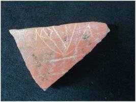 | Description / विवरण | It is a inscribed pot shared. A graffiti mark is noticed on the obverse side of the object. It is a red ware with triangle in shape |