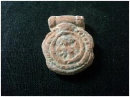 | Description / विवरण | It is a Clay Bullea. Upper portion of the object is beautiful carved but it is not not clearly visible. Some circle & rope designed is noticed center of the circle a picture is depticted. Which is not clearly visible |