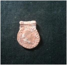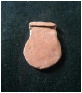 | Description / विवरण | This terracotta object is a Clay Bullea. It is a broken and eroded. Some designed is noticed on the obverse side of the object which is not clearly visible. Back portion of the object is plain |