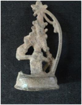 | Description / विवरण | It is a Bronz Female Figurine. Sitting on a pedestal. Left side leg of image is bending and right side leg is in half bend and its feet are touching the pedestal. This female figurine is decorated with ornaments. |