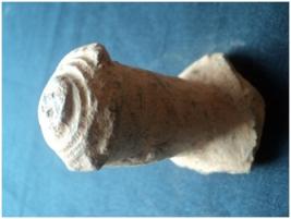 | Description / विवरण | A broken pipe part of a spout. Made of terracotta with having a perforation. This object is totally broken and eroded. One end of the object is thicker than other end. |