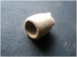 | Description / विवरण | Terracotta Chillam with having a perforation. Base portion of the Chillam is wider than top portion end. Top portion of the Chillam has been broken. One chiseled mark is noticed on the object.. |