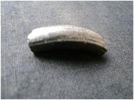 | Description / विवरण | It is broken piece of a Bangle with made of glass material. Black in colure. This fragment of a bangle incised with a groove on both side margin and also in inner side of the Bangle. Inner side is flattered |