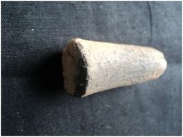 | Description / विवरण | Terracotta gamesmen with having rounded and flat base. It is look like a cone shape. Top portion is pointed. It can stand very well on its flat base. A deep hole mark is noticed on the top portion of the object. |
