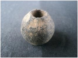 | Description / विवरण | Terracotta short barrel circular Bead with having a perforation. Both end portions are little but broken. Cut marks is also noticed on the object. |