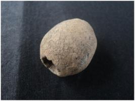 | Description / विवरण | Terracotta barrel circular bead with having a perforation. Base portion is convex shape. Crack mark is noticed on the object |