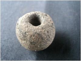 | Description / विवरण | Terracotta short barrel bead with having a perforation. Small deep holes are noticed on the object. |