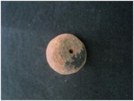 | Description / विवरण | Terracotta Arecanut shaped Bead with having a perforation. One of end of the object is flat. Because of that flatness of the object, it stands very nicely. One side body portion of the object is broken. |