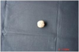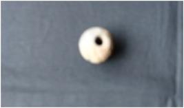 | Description / विवरण | Terracotta short barrel circular bead with having a perforation flat at two ends. One of end is slightly broken. |