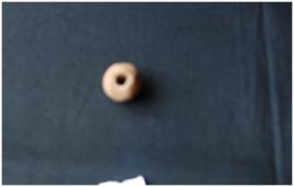 | Description / विवरण | Terracotta circular shaped bead. Slightly projecting edge is noticed at one side perforated end. |