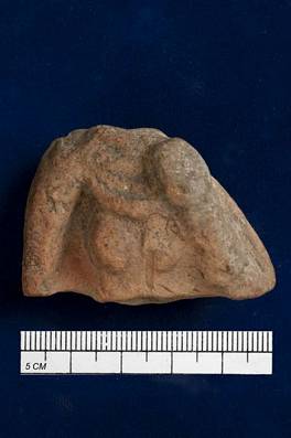 | Description / विवरण | Terracotta fragment depicting the middle part of the figure. Details are not clear. Probably she is caring a child in her left lap. |