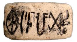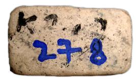 | Description / विवरण | Indus seal prepared with plaster of Paris. It shows pictographic script on one side. |