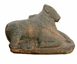 | Description / विवरण | Seated Nandi turn towards the right. Small hump. A long garland of bells across the hump. |