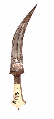 | Description / विवरण | Jambia a sword with curved blade with ivory handle with decoration. |