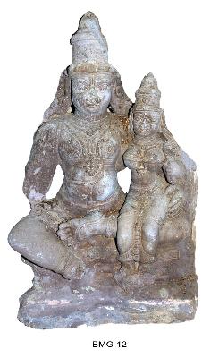 | Description / विवरण | Lakshmi narayana icon is carved in shale. In this lakshmi is seated on the left lap of narayana who sat on lalitasana. Among the two hands the right hand is missing, from the elbow. Babhamanda is also represented. Right hand, right leg bottom portion, devi face is not there. Whole sculpture is damaged like layers. Prabhavli represented. |