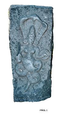 | Description / विवरण | A three hooded Nagini, upper part i.e. head and torso human and the lower part coiled serpent. She has two hands holding a sword and round shield in the right and left hands respectively. She wears a karandamakuta, patrakundalas,a long flowing hara and a necklace. |