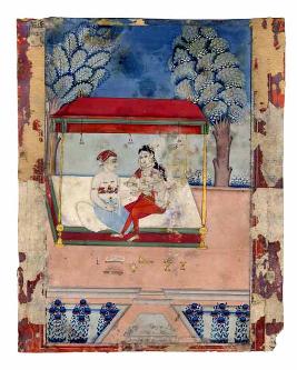 | Description / विवरण | Seated male and female with a child in a royal garden. |