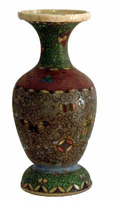 | Description / विवरण | Flower vase of glazed jade colour consisting of flower design with butterfly. |