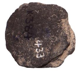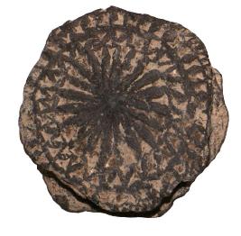 | Description / विवरण | Spool shaped ear ornament with radiating lines from the hub with in a circle and geometrical design at the periphery, plain ventral surface. |