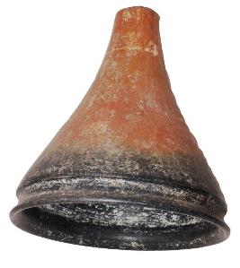 | Description / विवरण | Polished black and red ware, funnel shaped tulip lid cum bowl with flat top and wide mouth, flanged neck with out-turned flattened rim, Graffiti Brahmi letter Ma mark below the neck. |