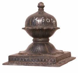 | Description / विवरण | It has square stepped base with inverted lotus pedestal and fully blossomed lotus, over which a domical part with a finial or knob is prominently seen. |