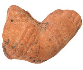 | Description / विवरण | Broken part of a terracotta figurine represents raised right hand broken decorated with keyura and wrist-band. |