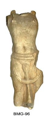 | Description / विवरण | it is a fragment of male sculpture made of lime stone, having a hip dress.foot, hand and head are missing. |