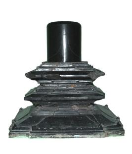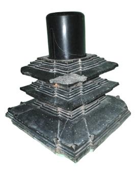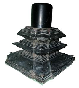 | Description / विवरण | A finely polished Linga with flat upper surface, kept in a well decorated three tierd panavatta. |
