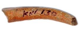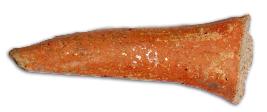 | Description / विवरण | Leg of a red ware pot with flat base and slightly curved body, pointed foot end It looks like a horn of bull |