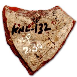 | Description / विवरण | Fragment of a red ware pot, painted with black colour, thick lines are drawn slantingly from the rim portion extended to the shoulders. |