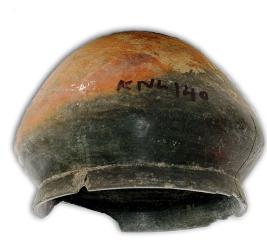 | Description / विवरण | Black and red ware top with carinated shoulder and sagger base, slightly everted and featureless rim. Damaged at the base and rim. |