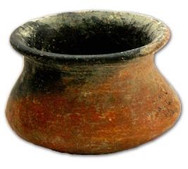| Description / विवरण | Black and red ware pot with convex body and round base, high neck with splayed out externally thickened rim, deep groove at the shoulder. |