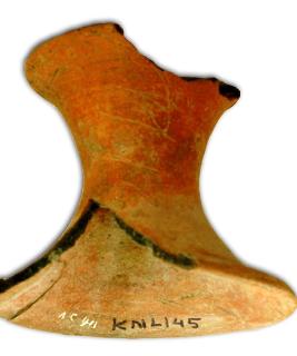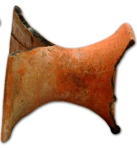 | Description / विवरण | Red ware stand with broken top and bottom, convex body with splayed out externally thickened rim at both ends. Abraded graffitti mark at the bottom of the stand. |