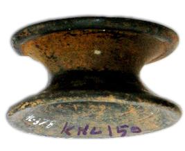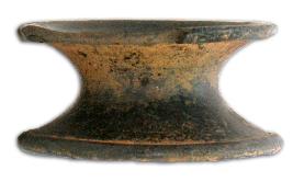 | Description / विवरण | Polished black ware stand with slightly damaged rim at one end, convex body with splayed out externally thickened rim at both ends, deep groove below the rim. |