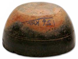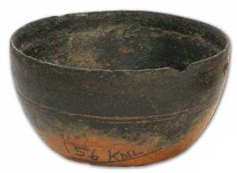 | Description / विवरण | Black and red ware deep bowl with slightly damaged rim, flat base, slightly incurved pointed rim, a pair of deep concentric circles at the shoulder. |