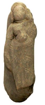 | Description / विवरण | Miniature figure of standing lady in Abhanga posture, left hand is broken and missing, she wears sari, kantabharana, armlets and simple band of headdress. |