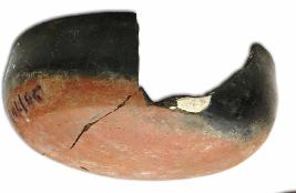 | Description / विवरण | Broken black and red ware bowl with round base and incurved rim, some portion is broken and missing. |